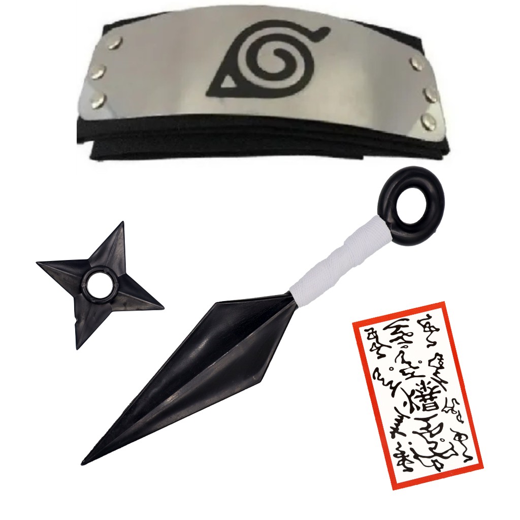 Kit com bandana naruto shippunden, kunai e shuriken. Super kit ninja naruto bandana shuriken 10cm + kunai 22cm + 3 papel bomba. Anime naruto kunai conjunto shuriken bandana naruto anime cosplay adereços de plástico arma ninja expo festival presente,aproveite promoções, envio grátis, . Kit bandana ninja naruto + kunai 15cm + shuriken 12cm o kit é composto de 1 kunai, 1 shuriken e 1 bandana preta de konoha. Faixa em tecido e plástico,acessórios ninja com material flexível com pontas arredondadas.