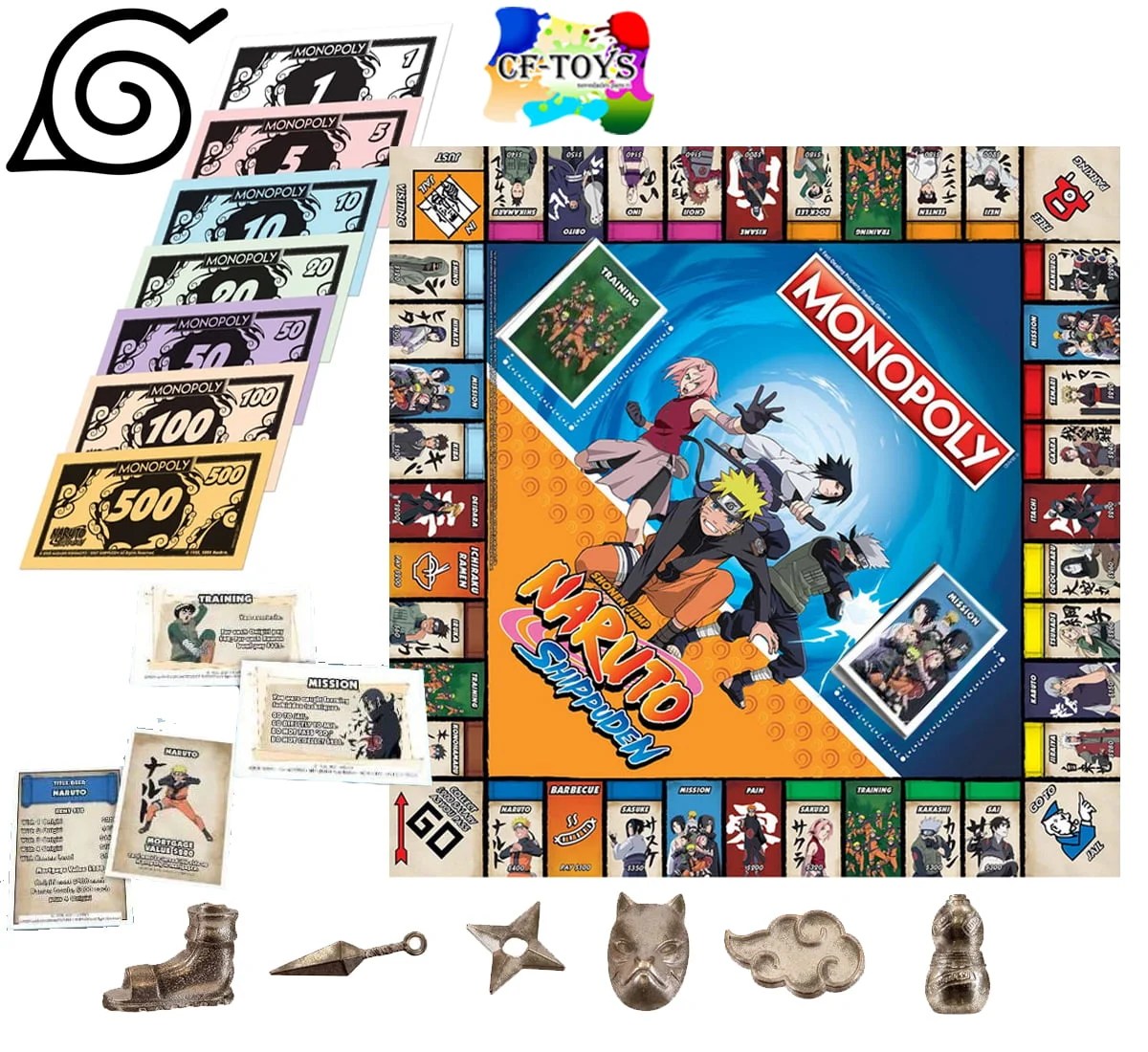 Enjoy hours of anime board game play when you get this monopoly naruto board game naruto monopoly . Draw training and mission cards, develop your skills and meet the famous heroes of.